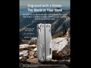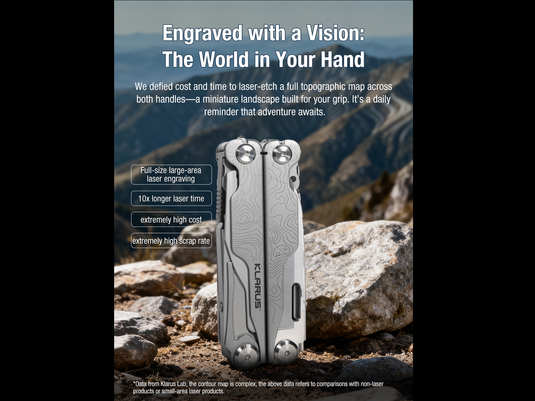 EXKLUZÍVNE TOPOGRAFICKÉ LASEROVÉ GRAVÍROVANIE: Kompletná topografická mapa je laserom vyrytá na oboch hliníkových rukovätiach leteckej kvality – miniatúrna krajina navrhnutá pre váš úchop. Táto každodenná pripomienka, že na vás čaká dobrodružstvo, si vyžadovala 10-krát dlhší čas laserovej práce, extrémne vysoké náklady a extrémne vysokú mieru odpadu, ale vzdorovali sme nákladom a času, aby sme vytvorili toto funkčné umelecké dielo, ktoré je vo svete multifunkčných nástrojov jedinečné.