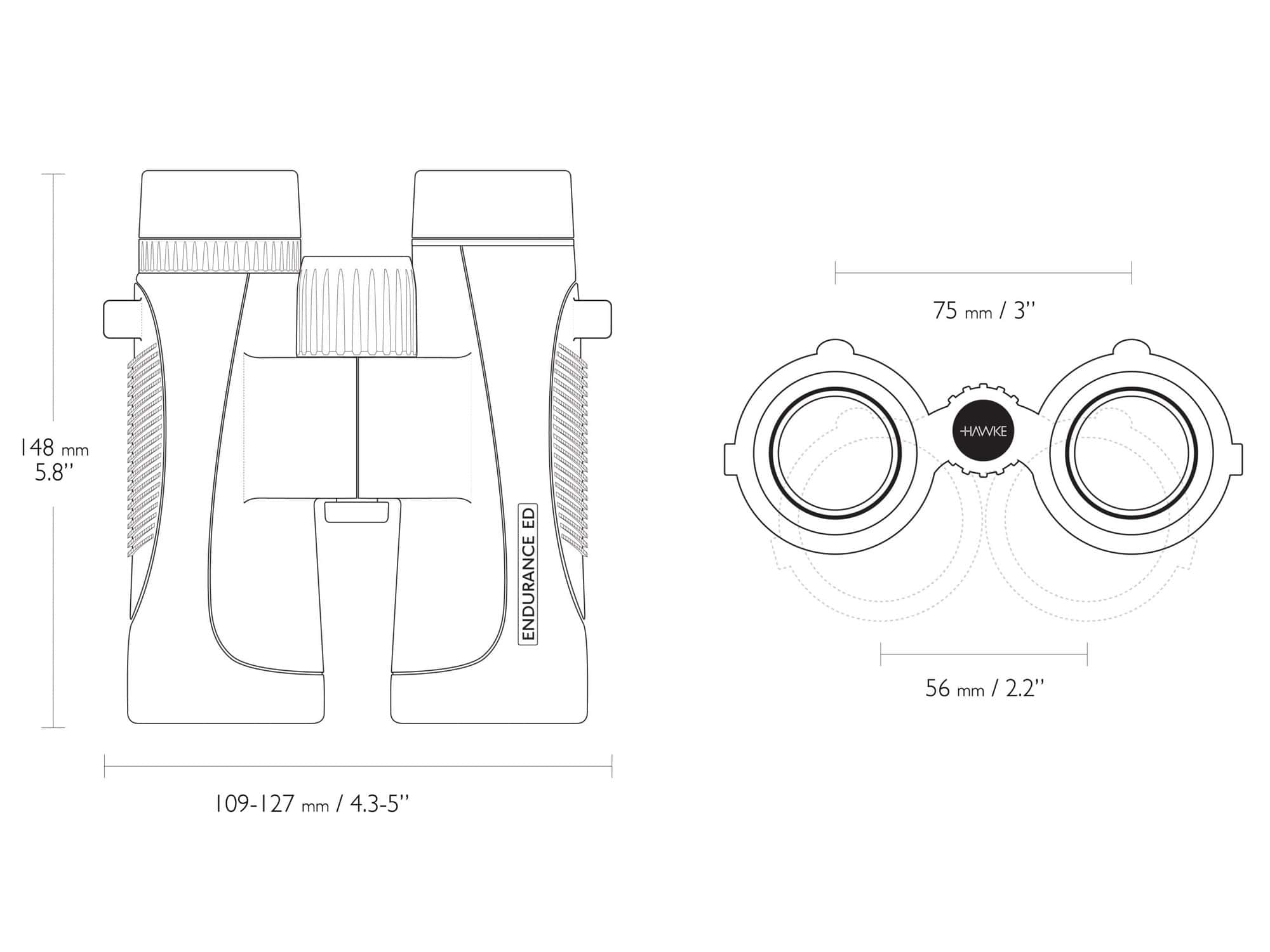 ENDURANCE ED 8x42 Black (36204) ED sklá/FMC/BAK4/Fázová Korekcia (PC)/Vodotesný (Waterproof) Vlastnosti: ED - Extra nízky rozptyl (Extra-low Dispersion) skla pre optimálnu jasnosť. Plne mnohovrstevná optika produkujúca ostrý obraz. Close focus (Blízke priblíženie) od 2m / 6.6ft. Hranoly BAK-4 s Vysokým rozlíšením s Fázovou Korekciou (Phase Correct). Ľahké pogumované telo vyrobené z horčíkovej zliatiny. Pripevnené krytky objektívu a okuláru pre maximálnu ochranu. Otočné a výsuvné očnice s pozíciou zastavenia pre očný relief. Závit pre upevnenie na trojnožku. Plnený dusíkom – vode a hmle odolný. Hawke 10 ročná záruka po celom svete. Špecifikácie: Farba Tela – Čierna. Zväčšenie – 8x. Objektív – 42mm. Šošovky – Plne mnoho-vrstevné (Fully Multi-Coated FMC). Hranoly – Roof BAK4, Strieborný Zrkadlový Povlak. Nastavenie dioptrií – Pravá strana. Závit pre upevnenie na trojnožku: Áno. Blízke Priblíženie (Close Focus) – 2m / 6,6ft. Zorné pole m/1000m / ft./1000yds – 133m / 399ft. Očný relief (Eye Relief) – 17mm / 0,7”. Výstupná pupila (Exit Pupil) – 5,3mm / 0,21”. Výška – 148mm / 5,8”. Šírka – 109-127mm. Váha – 705g. Plnený dusíkom – vode a hmle odolný. Súčasťou balenia sú aj: Prenosné ochranné látkové puzdro. Popruh pre nosenie na ramene. Popruh pre nosenie na krku. Krytky objektívu a okuláru. Handrička na čistenie.