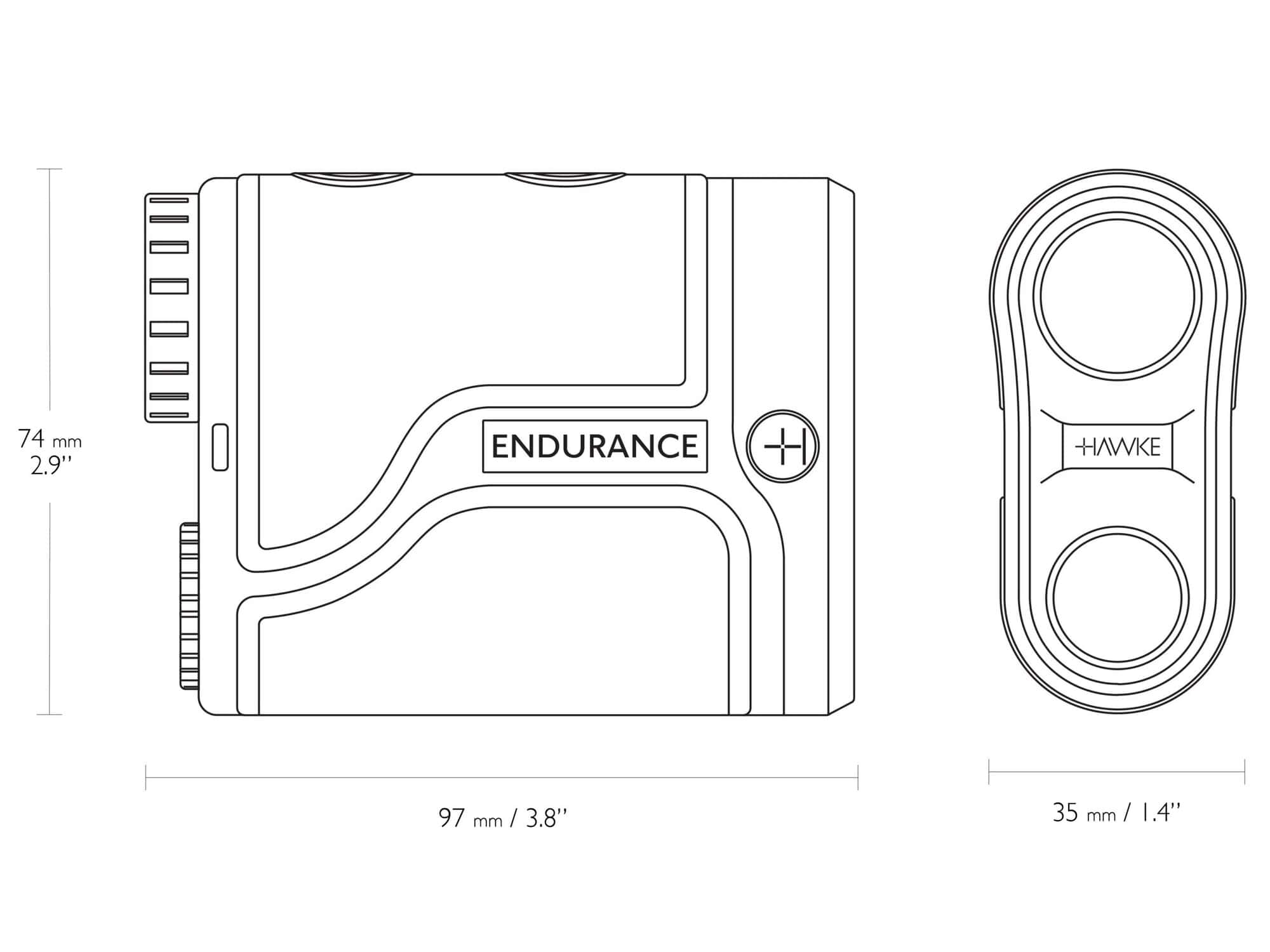 ENDURANCE 1500 IR - Laser Range Finder (1500m) FMC/BK-7/Vodeodolný (Waterproof) Kód produktu: (41212) Vlastnosti: Plne mnohovrstevný optický system (BK-7 hranoly). 6x priblíženie a nastaviteľný diopter. OLED Displej s červeným podsvietením ikoniek (6 stupňov jasu). Optika s vysokým prenosom svetla so skutočnými farbami. Režim merania (Štandardný/Vodorovná vzdialenosť/Uhol/Režim v Daždi/Lovecký režim). Široko Uhlý optický system. Meranie s presnosťou +/- 1m. Automatické vypnutie. Ľahká a kompaktná konštrukcia. Ergonomicky navrhnutý tak, aby sa zmestil do ruky. Plnený dusíkom, Vode / dažďu a hmle odolný. Hawke 2 ročná záruka. Zväčšenie – 6x. Meranie vzdialenosti – 5-1500m. Presnosť - +/- 1m. Objektív – 21mm / 0,08”. Šošovky – Plne mnohovrstevné (Fully Multicoated FMC). Hranoly – BK-7. Podsvietený displej: Áno. Meranie Uhla – 90°. Zorné pole m/1000m / ft./1000yds – 140m / 420ft. Uhol zorného poľa - 8°. Očný relief (Eye Relief) – 18mm/0.7”. Batéria – CR2 – 3V. Optimálne pracovné prostredie – od -10° po 40°. Stupeň Vodeodolnosti – IPX5. Váha – 170g. Dĺžka / Výška / Šírka – 97mm / 74mm / 35mm. Plnený dusíkom – vode a hmle odolný. Súčasťou balenia sú aj: Prenosné puzdro Šnúrka pre zavesenie na ruku CR2 batéria Handrička na čistenie. “STANDARD” MODE: Štandardný režim: Meria vzdialenosť priamou čiarou na cieľ , na ktorý ste zamerali. Vzdialenosť je meraná na najbližšiu desatinu (metra/yardu). Ak nie je nič (žiadna ikonka režimu) zobrazená na displeji (vpravo, alebo pod ukazovateľom zobrazenia vzdialenosti) – potom ste v štandardnom režime. Ak podržíte tlačidlo zapnutia (ON) v štandardnom režime, laserový diaľkomer bude nepretržite skenovať, aby ste sa Vy mohli pohybovať a budete tak dostávať konštantné informácie o vzdialenosti. “RAIN” MODE: Režim merania v Daždi: Meria priamu vzdialenosť k cieľu, ale ignoruje akékoľvek rušenie spôsobené padajúcimi kvapkami dažďa. Vzdialenosť cieľa musím byť ale viac ako 30metrov / 33 yardov. Pri zapnutom režime RAIN, hodnota merania Vodorovnej Vzdialenosti bude zobrazená tiež (v dolnej časti displeja). “HUNT” MODE: Lovecký režim: Meria priamu vzdialenosť na cieľ, ale ignoruje akékoľvek rušenie spôsobené vysokou trávou, alebo kríkmi, ktoré sa nachádzajú medzi vami a cieľom. Režim je ideálny napríklad pre odmeranie vzdialenosti ku Srne, ktorá kráča cez vysokú trávu, alebo lesom. Keď je spustený HUNT režim, ikonka režimu HUNT bude mať kruh okolo (platí iba v prípade nameranej vzdialenosti). Pri zapnutom režime HUNT, hodnota merania Vodorovnej Vzdialenosti bude zobrazená tiež (v dolnej časti displeja). “HORIZONTAL DISTANCE “HD” MODE: Vodorovná Vzdialenosť (HD) režim: Meria vodorovnú vzdialenosť k cieľu. Priama vzdialenosť sa ukazuje v hornej časti ukazovateľa vzdialenosti a vodorovná vzdialenosť v dolnej časti. Toto je obzvlášť užitočné na kompenzované meranie vzdialenosti náboja k cieľu. Ak napr. strieľate pri vysokom uhle v horách, alebo pri streľbe zo vzduchovky, HD režim dáva realistickejšiu vzdialenosť pre použitie pri výpočte cieľových bodov. Ak podržíte tlačidlo ON v režime HD, diaľkomer bude nepretržite skenovať, aby ste sa Vy mohli pohybovať a tak dostávať konštantné informácie o horizontálnej vzdialenosti. “ANGLE” MODE: Režim merania UHLA: Meria uhol pohľadu. Meria sa na najbližšiu desatinu stupňa. Na hornom ukazovateli sa zobrazuje priama vzdialenosť a na dolnom sa zobrazuje hodnota uhla. Pri meraní z kopca sa vľavo od zobrazenia uhla objaví symbol mínus. Nastavenie Jasu Displeja: Je možné nastavenie jasu displeja v 6 stupňoch jasu.režim nastavenia jasu sa objavý, keď sa ukazujú všetky ikonky spolu. Hodnota jasu sa objavý v hornej časti. Stlačením tlačidla POWER si viete zmeniť hodnotu nastavenia jasu. Posledná hodnota nastavenia zostane rovnaká aj po vypnutí diaľkomeru až po dobu, kým nevyberiete batériu. Nastavenie jednotiek merania: Diaľkomer vie poskytnúť hodnoty merania v metroch alebo v yardoch. Pre zmenu jednotky, podržte tlačidlo MODE po dobu 3 sekúnd. M = metre, Y = yardy.