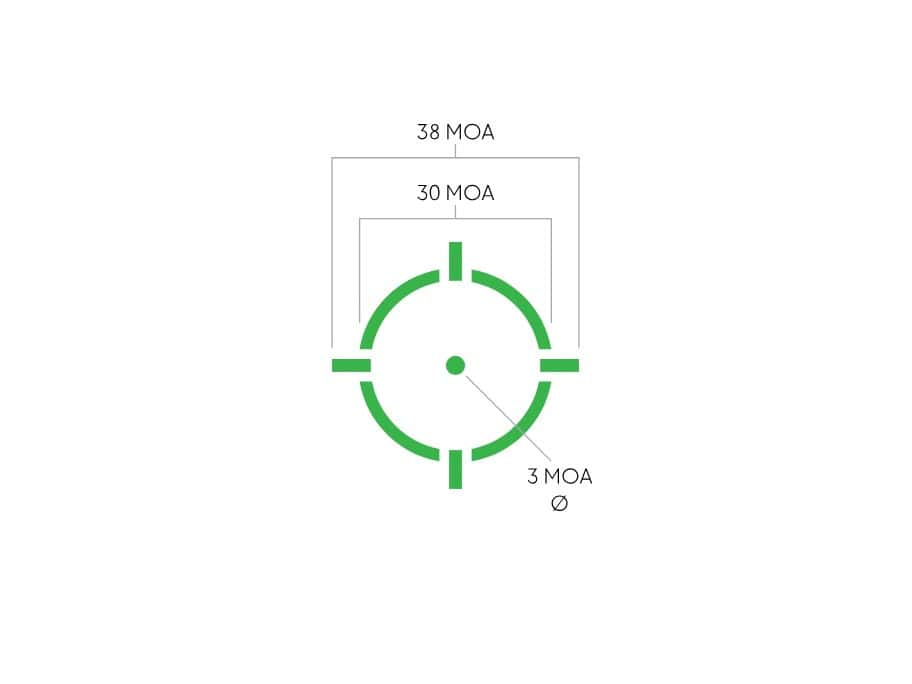 Podsvietenie: Zelená Bodka 3 MOA / Circle Dot (10 stupňov jasu).