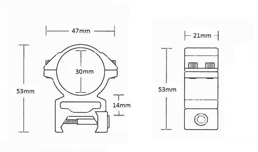 MATCH MOUNT 30mm 2 PIECE WEAVER HIGH (22117) 2 dielna montáž 30mm Vysoká (Weaver). Vlastnosti: Dvojité šesťhranné skrutky, ktoré udržia Váš puškohľad pevne na svojom mieste. Weaver modely sú vybavené priečnou skrutkou pre bezpečnejšie uchytenie. Vnútorná páska zabraňuje poškrabaniu a poškodeniu puškohľadu. Kvalitný eloxovaný hliník v matnej čiernej farbe. Prevedenie – Dva kusy. Veľkosť otvoru (Priemer) – 30mm. Výška – Vysoká (High) “s priezorom”. Základňa / kolajnička – Weaver. Uchytenie (základňa a vrchná časť) – Dvojité šesťhranné skrutky. Vnútorná páska – Áno. Vysúvací dorazový kolík – Nie. Výška – 53mm. Váha – 88g. Montáž je precízne skonštruovaná z vysoko kvalitného hliníka so zaoblenými hranami aby nedošlo k poškodeniu puškohľadu. Kompatibilná s: 22151 HAWKE Picatinny Ring Caps (30mm, Double Screw). 22161 Mount Inserts 30mm.