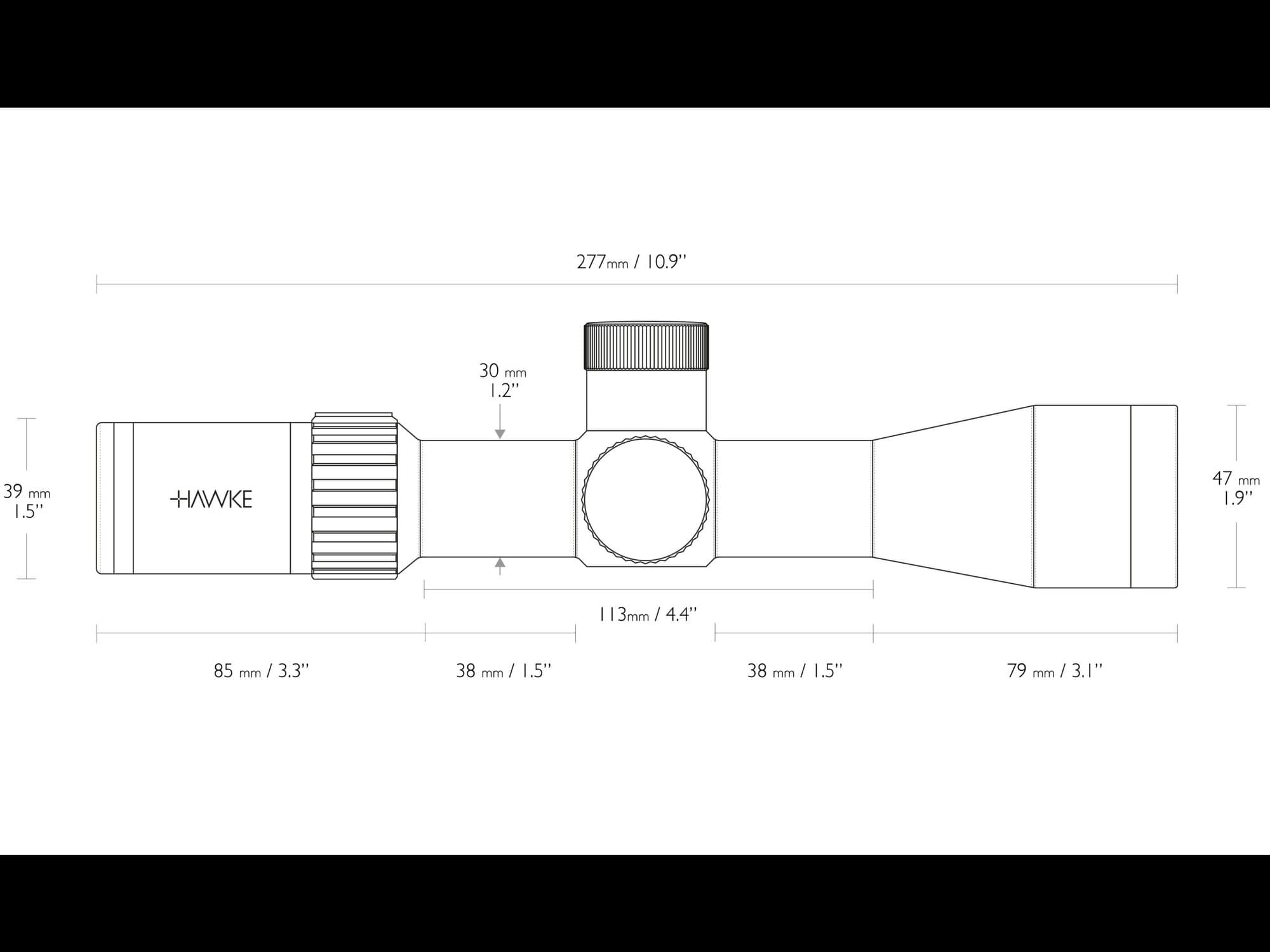 Viac k zámernej osnove na stránke Hawke: https://uk.hawkeoptics.com/reticle-information.html.