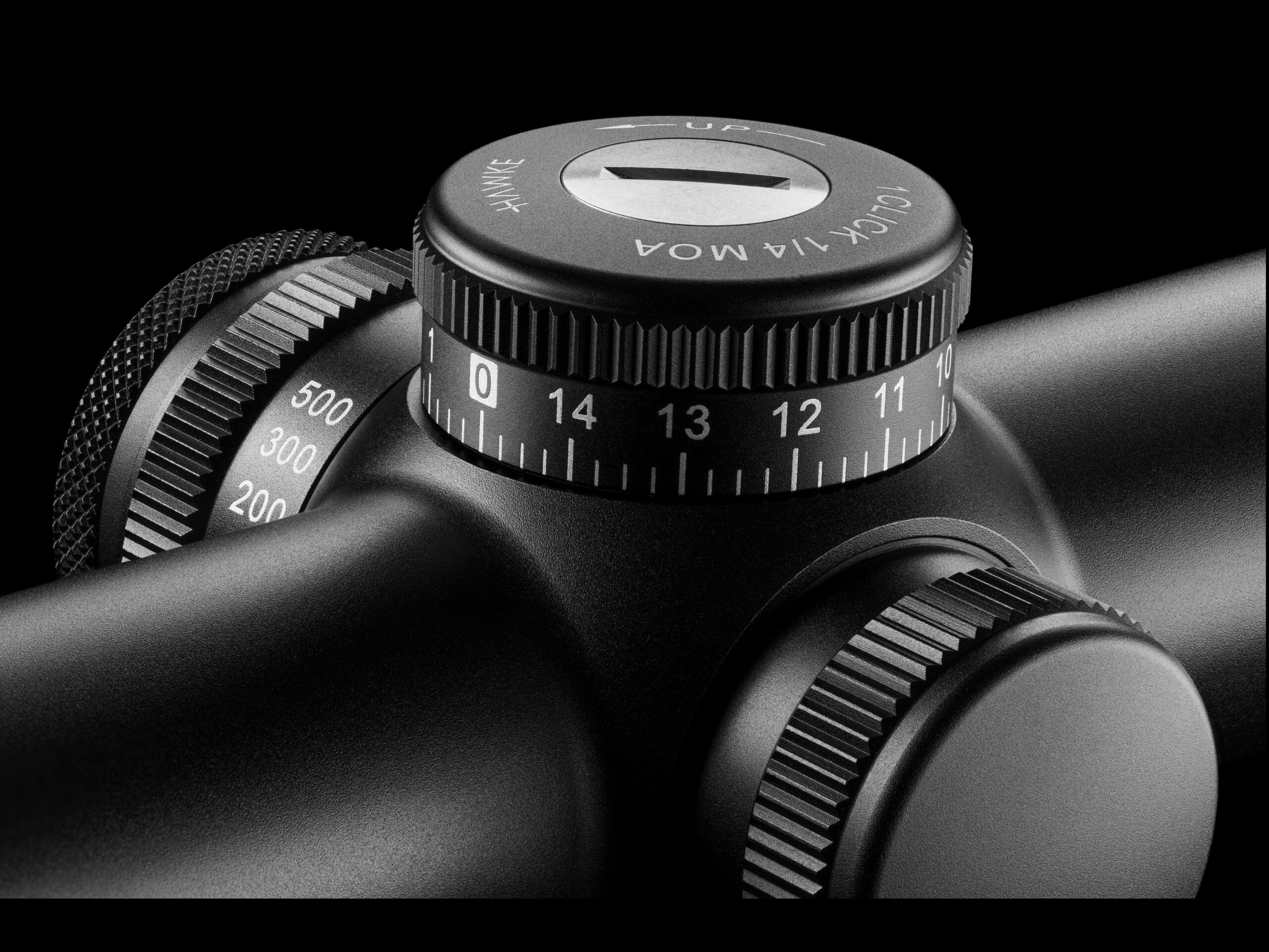 1/4 MOA (predstavuje 1 klik) odkrytá, uzamykateľná a resetovateľná výšková vežička a krytá, nízkoprofilová a resetovateľná vertikálna vežička.