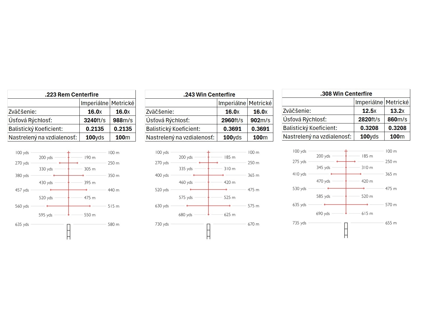 Vertikálne nastavenie (1 klik): 1/10 MRAD.