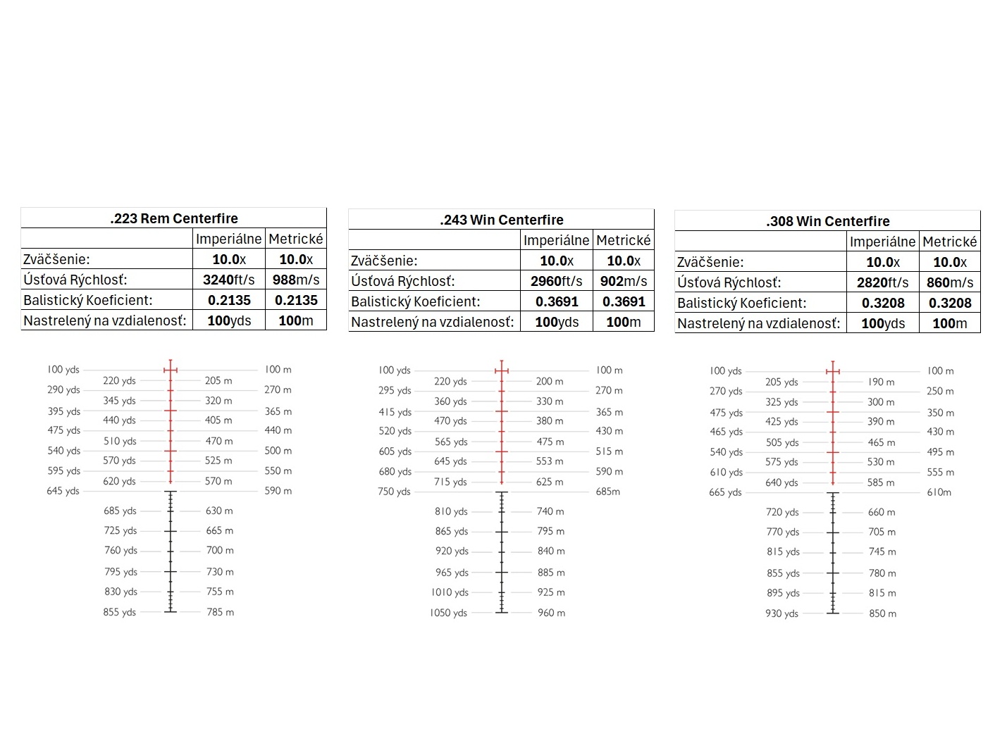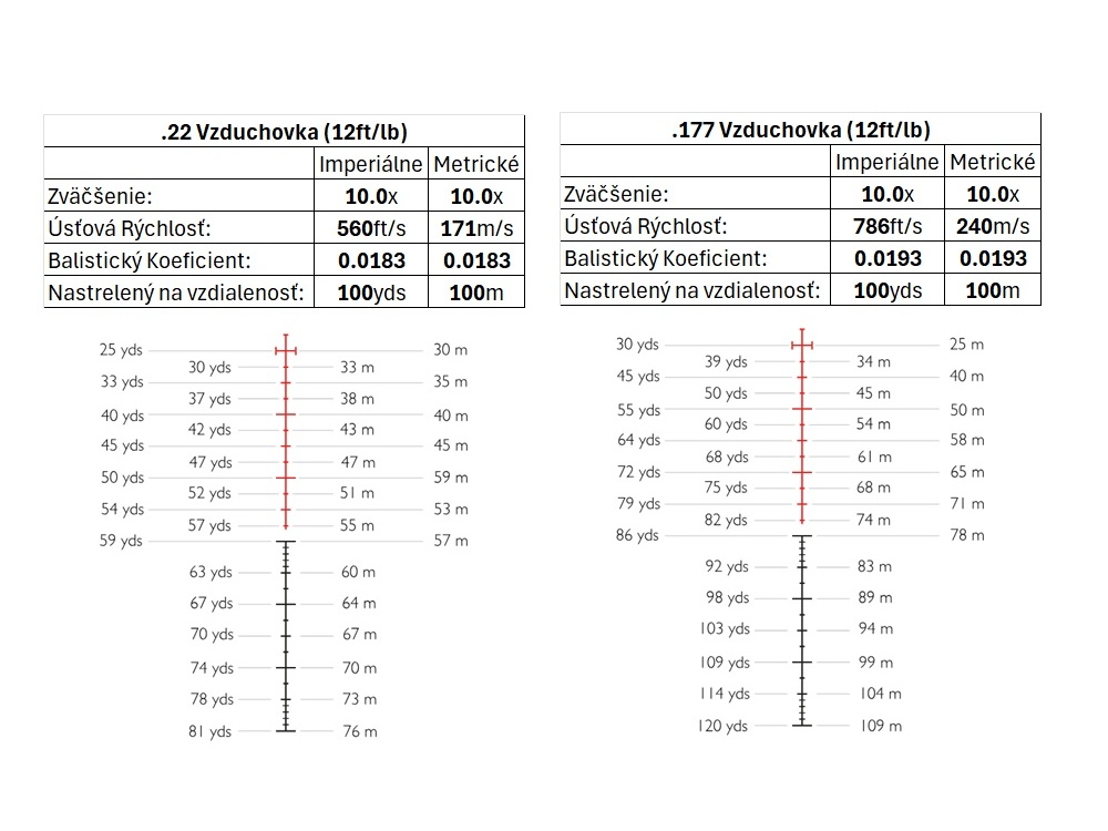 Vertikálne nastavenie (1 klik): 1/10 MRAD.