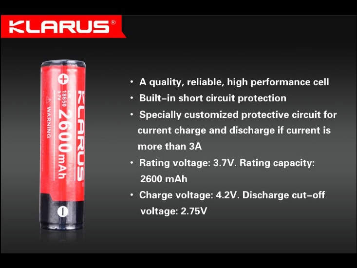 Klarus LiR 3,7V 9,6Wh 2600mAh nabíjateľná batéria (Klarus 18650BAT-26)