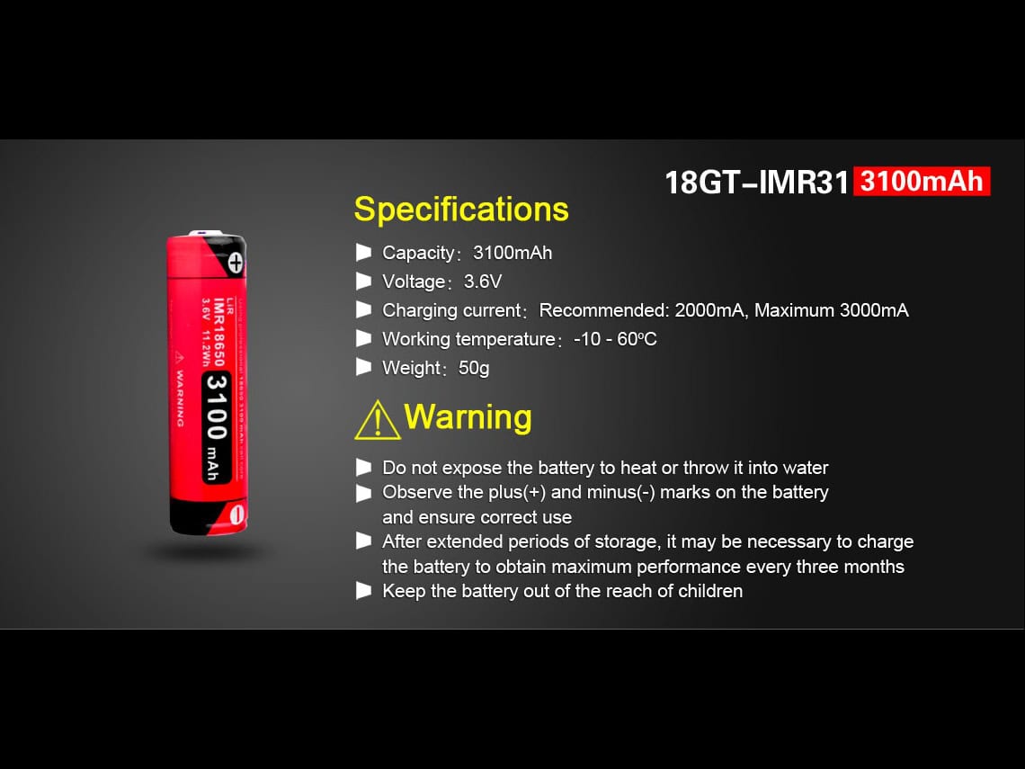 Klarus LiR IMR 18650 3,6V 11,2Wh 3100mAh nabíjateľná batéria (Klarus 18GT-IMR31)