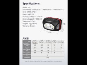 Dosah 440 ANSI lúmenov (2,5 hodiny) 100 metrov (328′) 2500 cd – Režim Turbo Reflektor + Reflektor