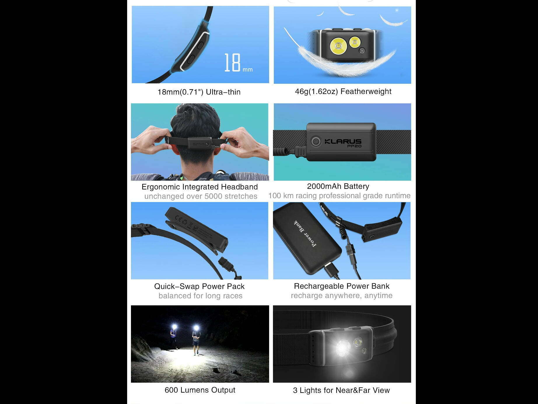 HR1- 300lm Modrá (ľahká výkonná čelovka).