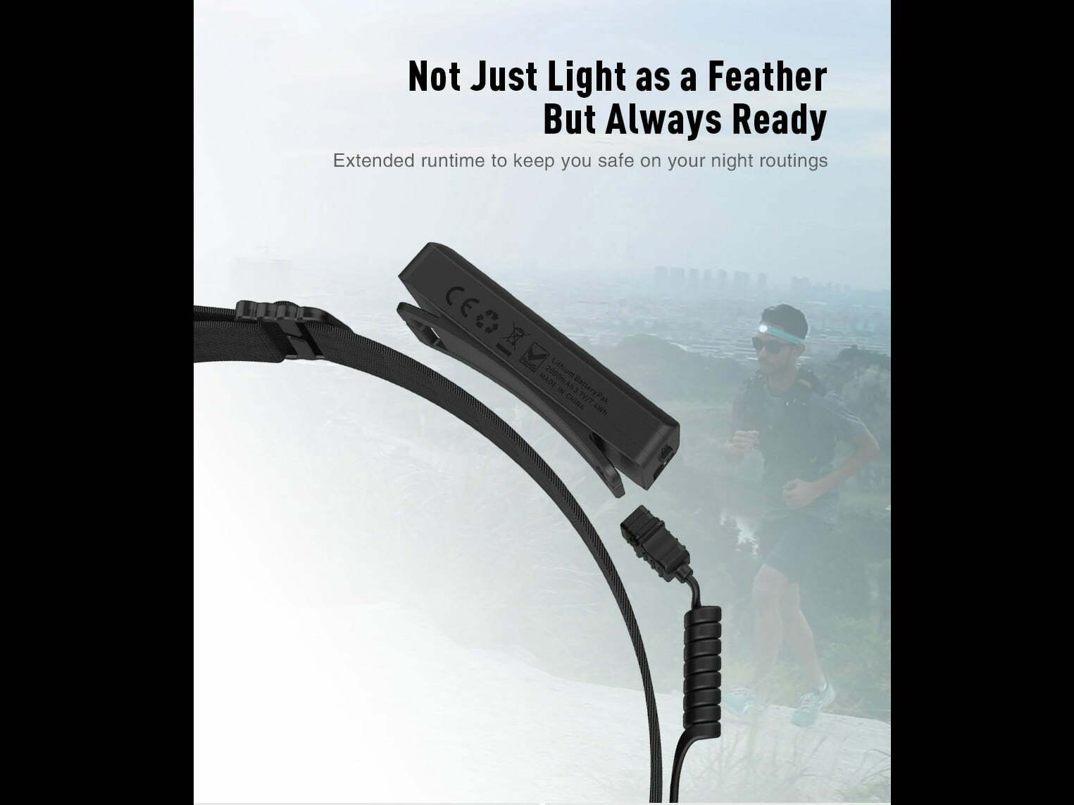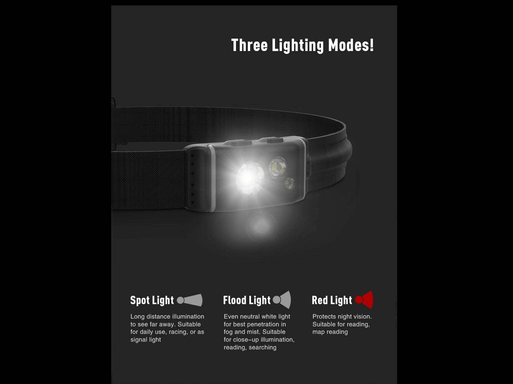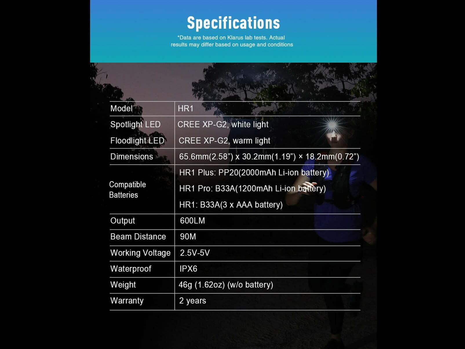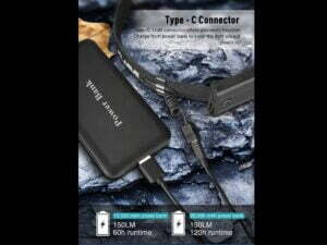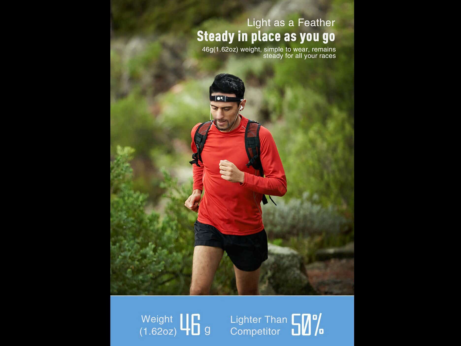 Súčasťou balenia je: Čelovka HR1, Popruh na hlavu, Puzdro na batérie, 3x AAA batérie, Klip na napájací kábel.