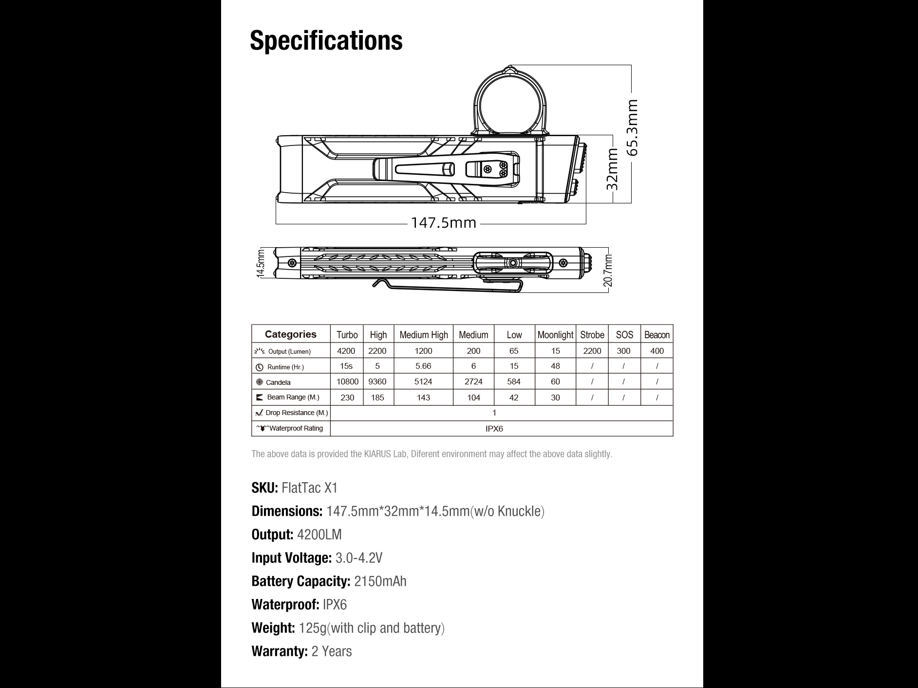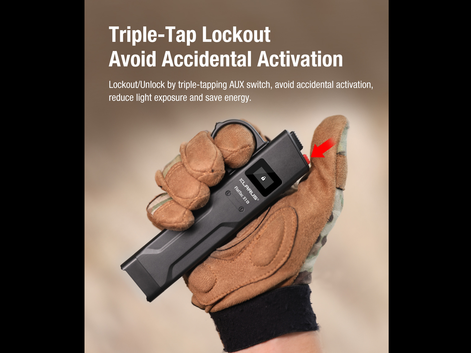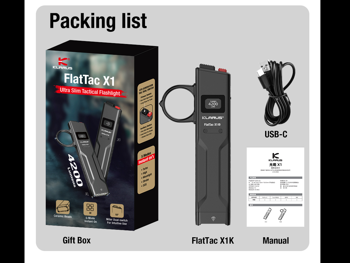 Taktické svietidlo Klarus X1E Ultra Slim, výkonné taktické tenké svietidlo s výkonom 4200 lúmenov v turbo režime po dobu 15 sekúnd, ktoré osvetľuje všetky taktické oblasti a predchádza nebezpečenstvu.