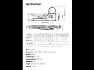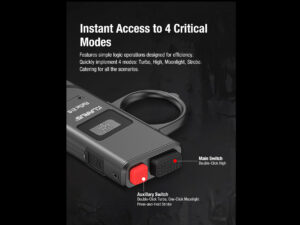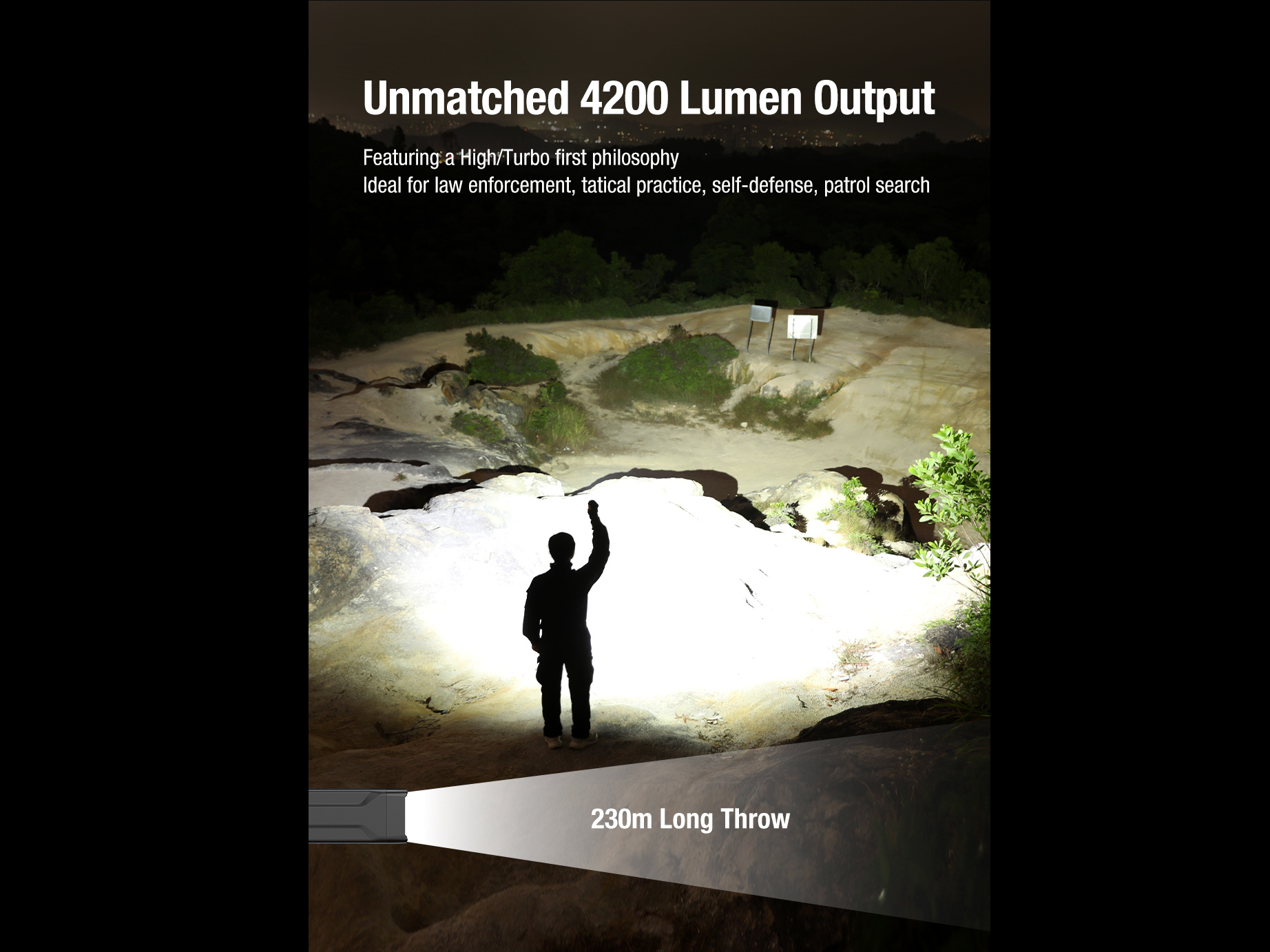S maximálnym výkonom 4200 lúmenov je toto svetlo ideálne na osvetlenie taktických polí alebo dokonca turistických chodníkov a kempingov. Inteligentný systém regulácie teploty zníži výkon pri dlhodobom používaní, aby sa predĺžila životnosť svetla.