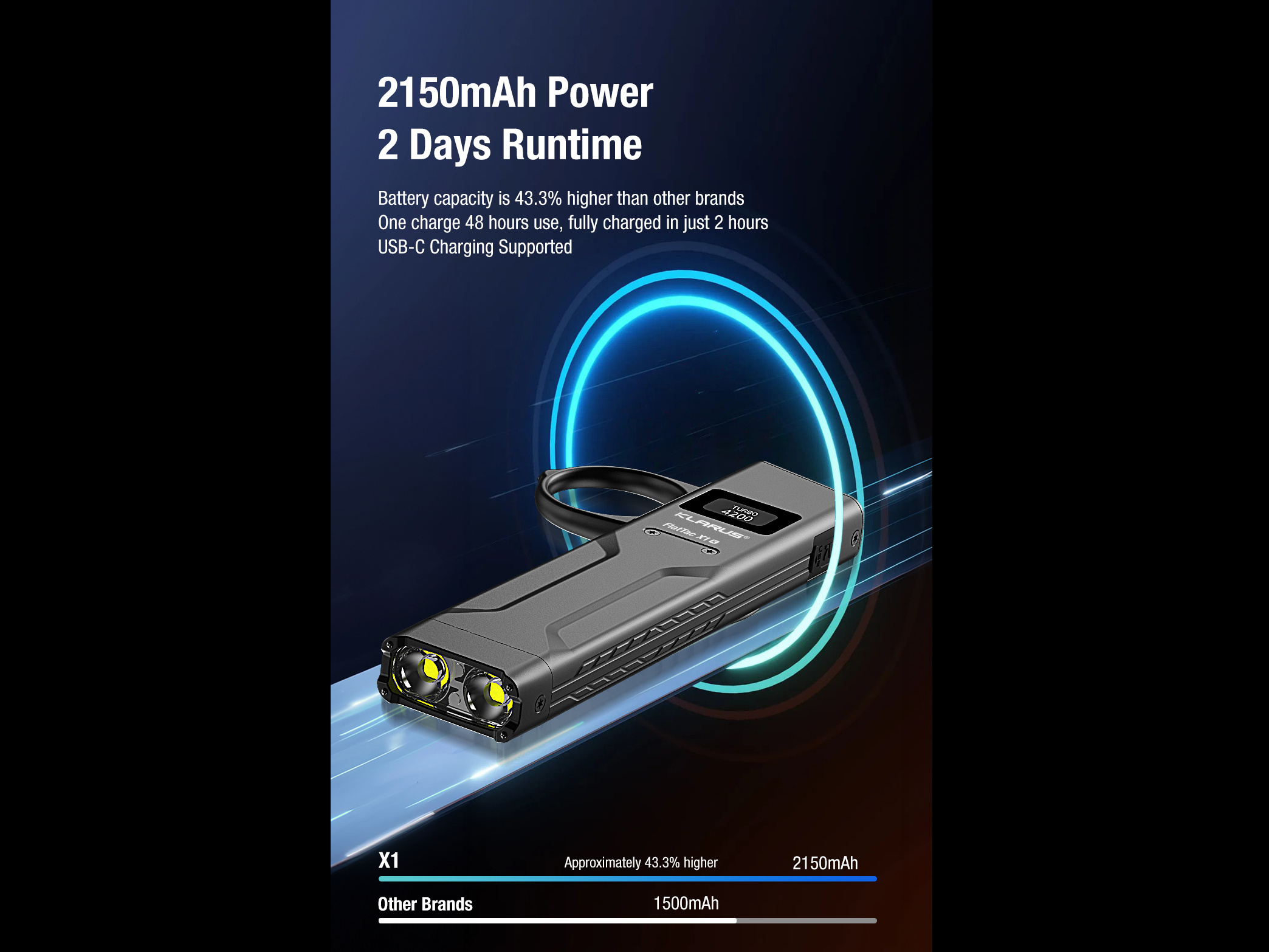 Port USB-C sa nabíja zo stenných adaptérov, powerbank a ďalších zariadení, takže nikdy nebudete dlho bez svetla! Tento spôsob nabíjania dobije svetlo len za 2 hodiny. Jeho vstavaná lítium-iónová batéria s kapacitou 2150 mAh poskytuje Klarus X1 v režime mesačného svitu výdrž až 48 hodín. Taktiež poskytuje vysoký režim prevádzky 5 hodín, čo vám zaručí maximálny jas tak dlho, ako ho potrebujete.