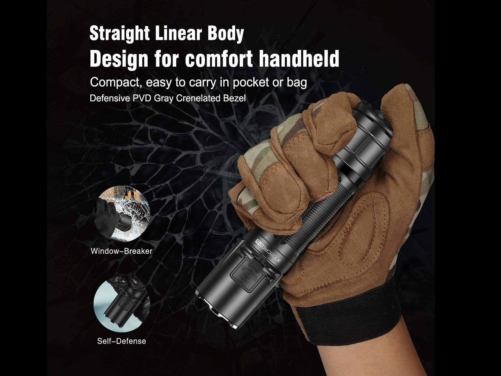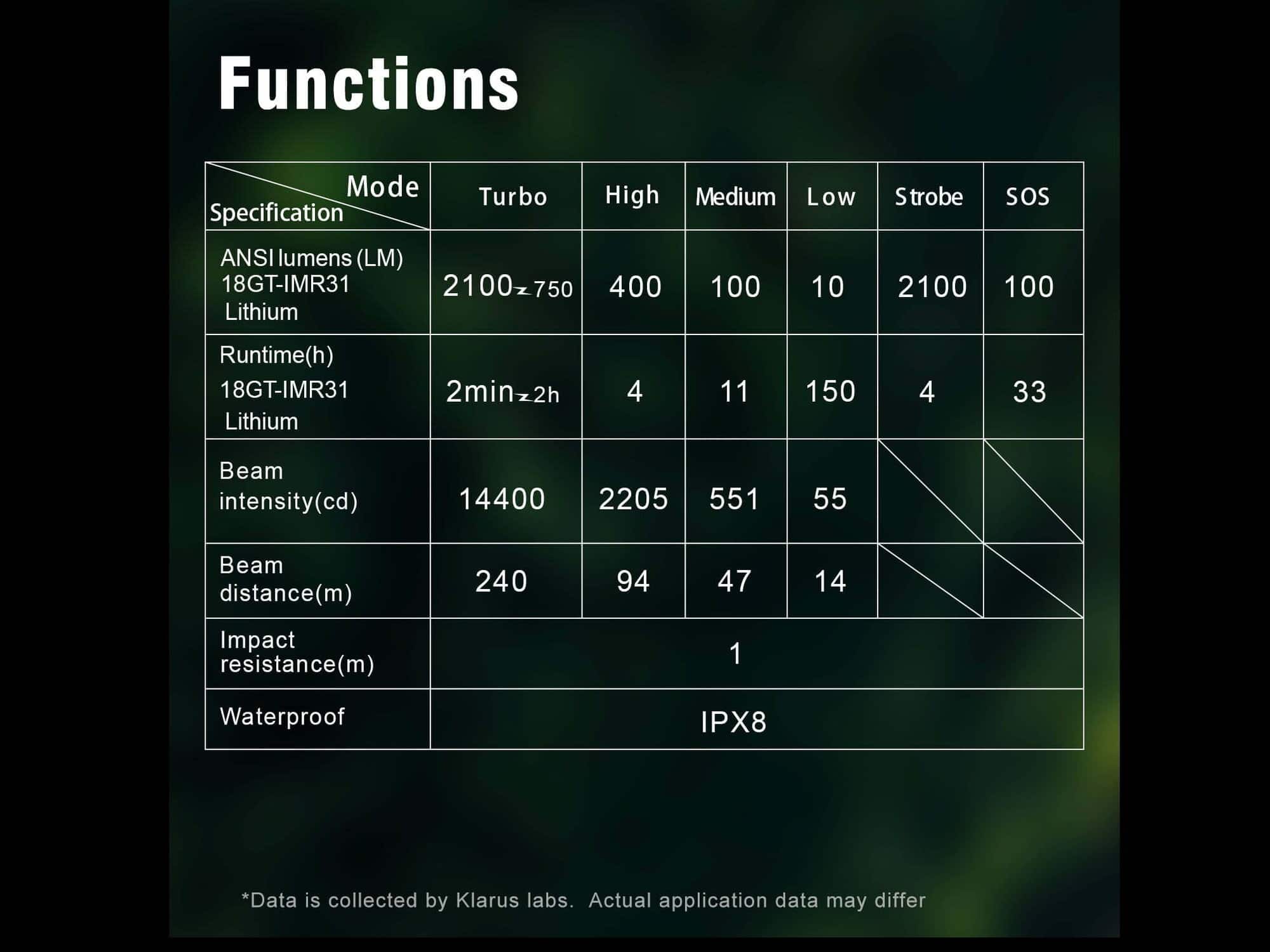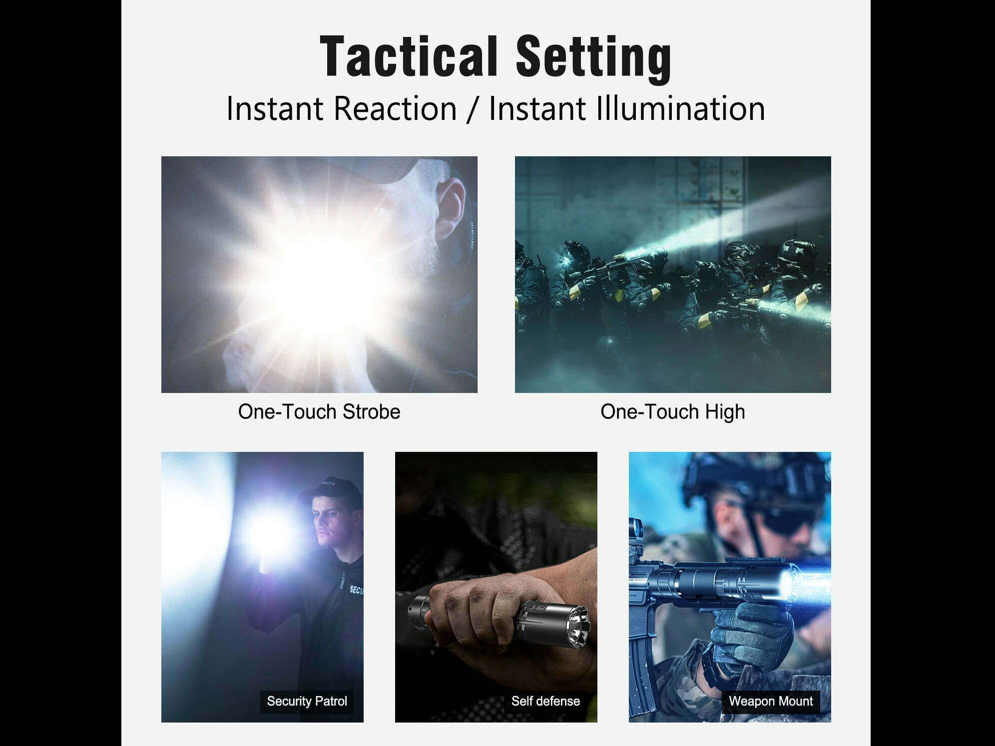 ◇ Taktické nastavenie (nastavené od výroby): Klasické ovládanie Klarus XT série, Jedným dotykom Turbo, Jedným dotykom Strobo, Jednoduchá a plná obsluha v akomkoľvek prostredí alebo situácii.