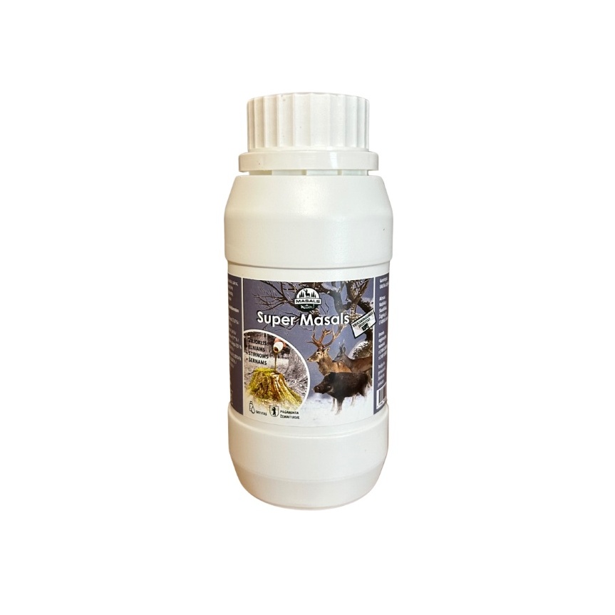 Super Masals je vyrobené z patentovanej zmesi prírodných zložiek, má intenzívnu vôňu, ktorá priťahuje zvieratá z veľkých vzdialeností. Pokročilé technológie zabezpečujú jej odolnosť a účinnosť aj v náročných poveternostných podmienka.